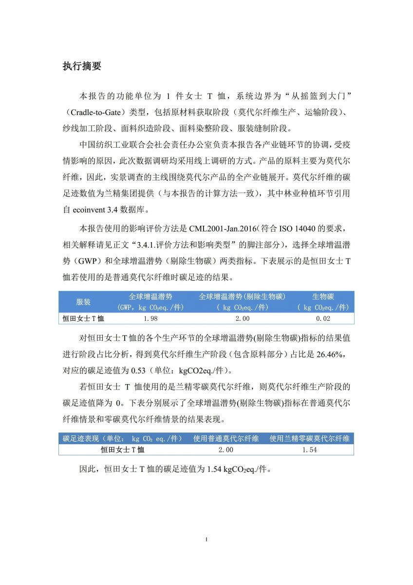 德州華源生態(tài)—恒田女士莫代爾T恤碳足跡報(bào)告